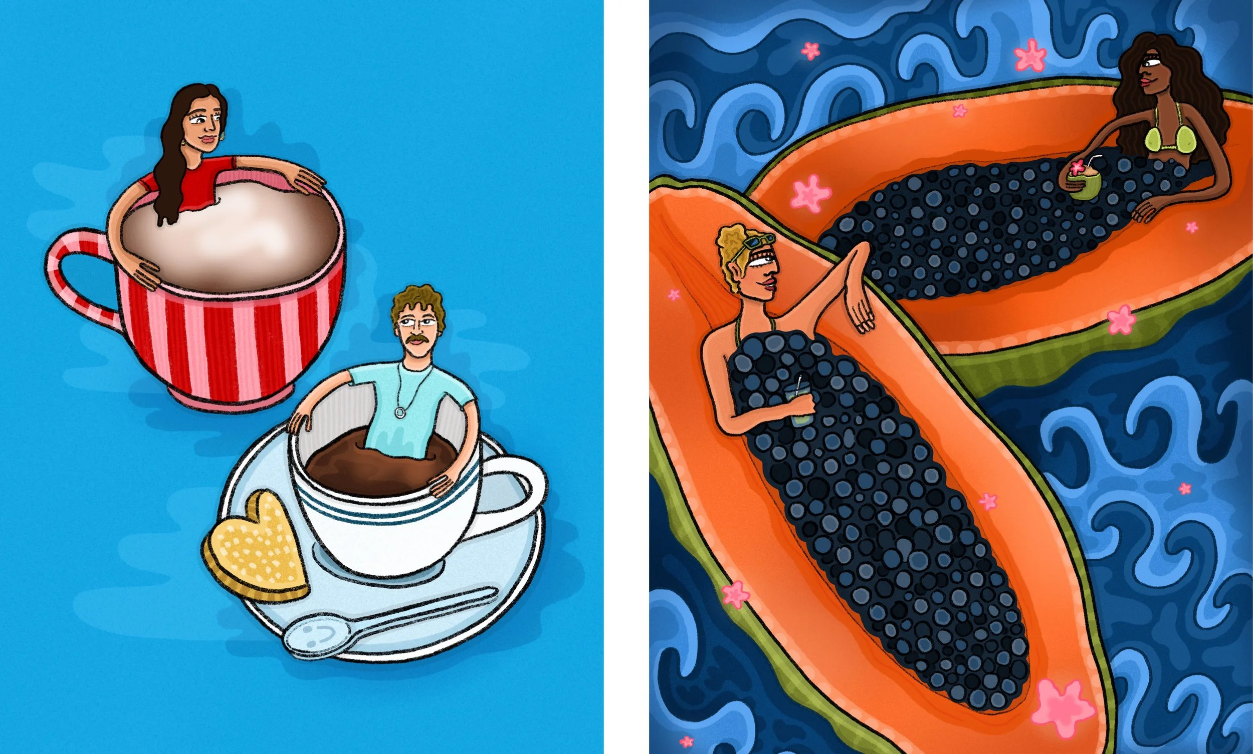 In my food illustrations, I bring food into my creative world. Highlighting the delight and sensuality food brings to our lives.