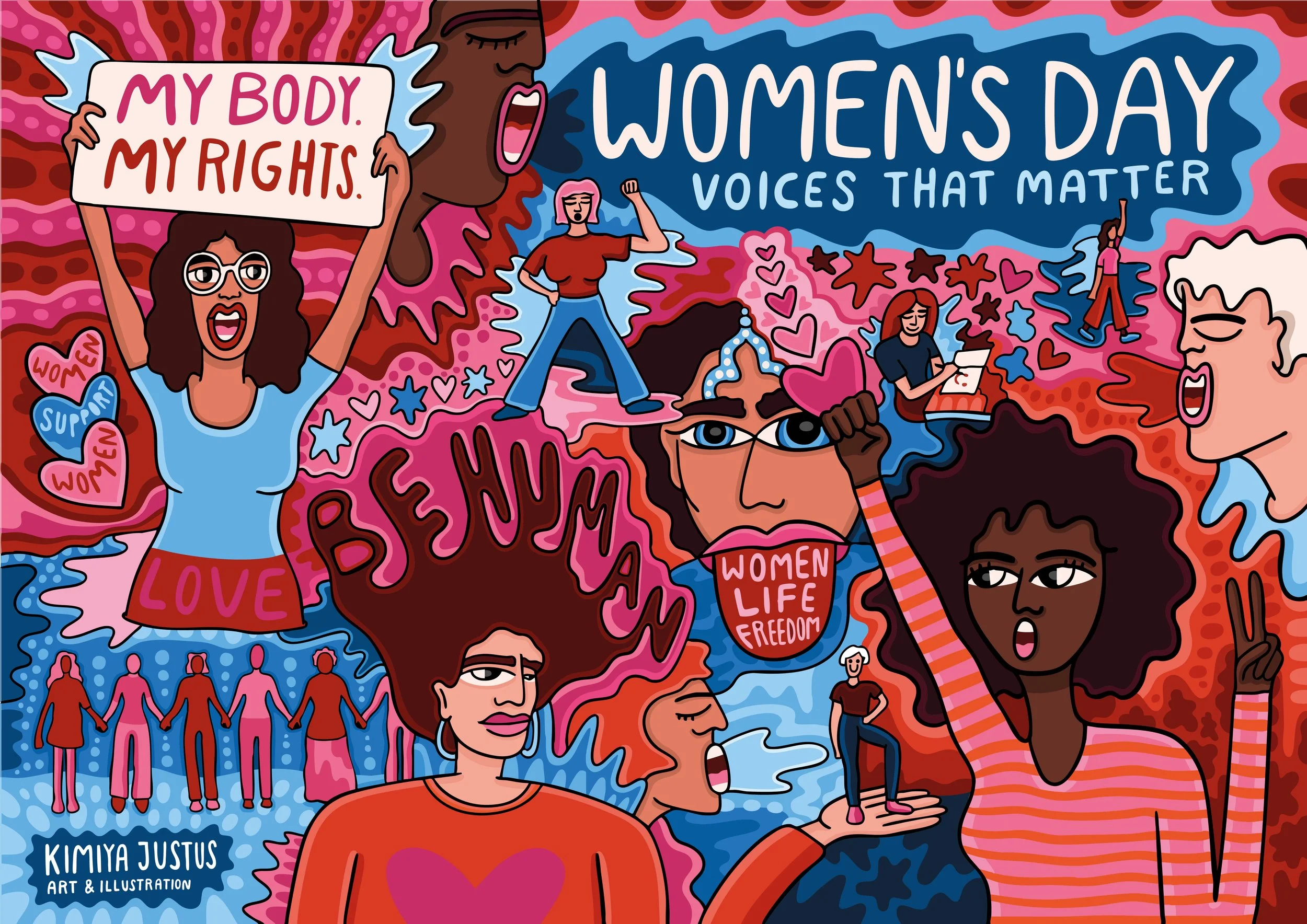 My design reflects the power and unity of women worldwide. With bold colors and strong symbols, it aims to inspire and raise awareness about the importance of women’s rights.